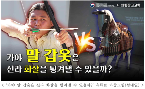 | 이번 타격 실험의 전 과정은 국립문화유산연구원 유튜브를 통해 공개되며, 말 갑옷 재현품의 제작 과정을 담은 별도의 영상도 향후 공개될 예정이다. 참고로, 재현된 말 갑옷은 현재 김해에 위치한 국립가야역사문화센터 1층 전시실에서 관람할 수 있어, 국민 누구나 가야 말 갑옷의 제작 방식과 과학적 실험 과정을 직접 확인할 수 있을 것으로 기대된다. 국립문화유산연구원 국립가야문화유산연구소는 앞으로도 진정성 있는 가야사 규명을 위해 체계적인 학술연구를 이어갈 것이며, 그 성과를 국민에게 다양한 방식으로 공유하는 적극행정도 지속할 것이다.