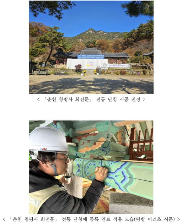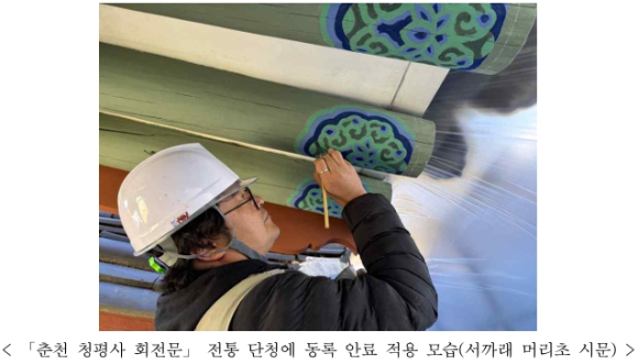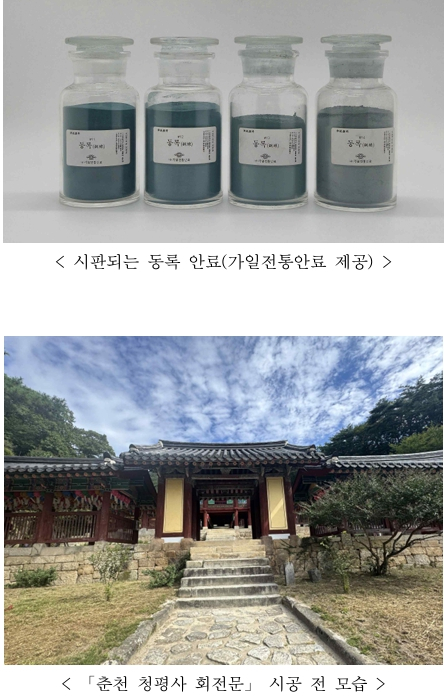 - 동록 안료 산업화 성공에 이어 보물 「춘천 청평사 회전문」 전통 단청 원형 재현 공사에 적용