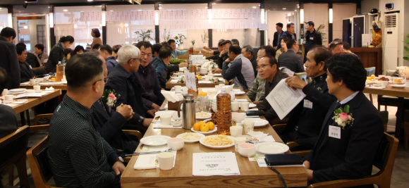 “향우님들 오늘 식사 맛있게 드시고 고향 선배님들 만나셨으니 정겨운 대화 나누시면서