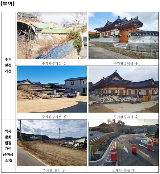 국가유산청은 앞으로도 주민 주거 및 생활환경 개선 지원을 통한 주민의 삶의 질 향상을 도모하고 매력 넘치는 고도를 조성하여 지역경제와 문화를 활성화함으로써 국가 균형발전에 기여할 수 있도록 지속적으로 노력할 계획이다.