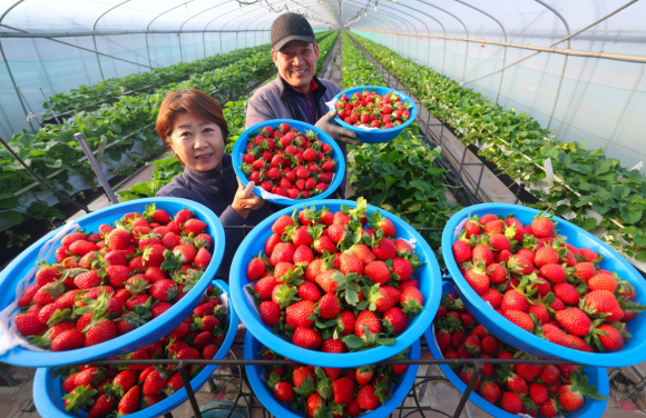 일두의 고장 지곡 설향딸기 맛 보이소새콤하고 달콤한 감성 딸기 인기 만점한용택 기자 /