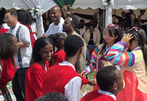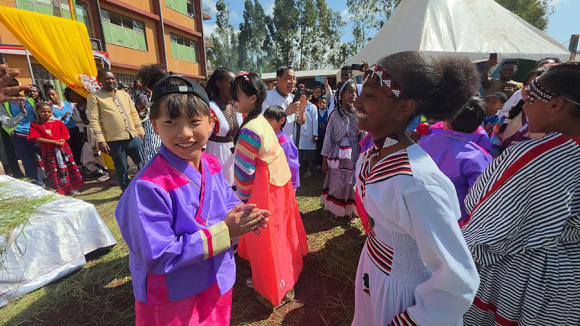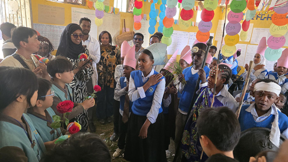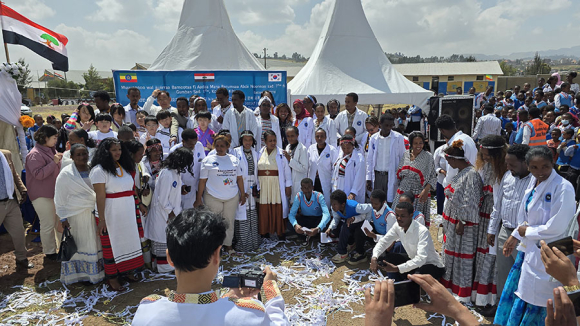 | 학생들이 Abdi Nonno 초등학교와 Tullu Dimtu 초등학교를 방문했을 때는 현지 학교에서 태극기를 게양 해놓고, 3천여명의 친구들이 나와 줄을 서서 장미와 화환을 걸어주고 환영하는 노래를 들려주어 감동적인 분위기를 연출하였다.