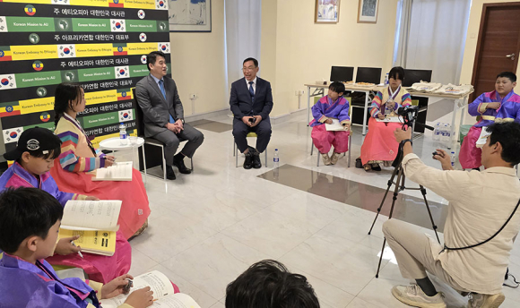 | 출발 첫 날에는 주한 에티오피아 데씨 달케 두카모 대사의 초청으로 에티오피아 대사관에서 대사와 환담을 나누며 글로벌 마인드를 기르는 뜻깊은 시간을 가졌고, 에티오피아에 도착해서는 가장 먼저 6·25참전용사 기념탑을 찾아 헌화하고 묵념을 올리며 75년 전 우리나라를 위해 싸웠던 에티오피아 군인들의 희생을 마음에 깊이 새기는 감사와 배움의 여정을 가졌다.