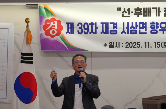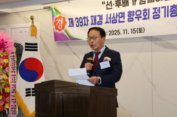 “오늘 제39차 재경서상면향우회 정기총회를 축하드립니다.