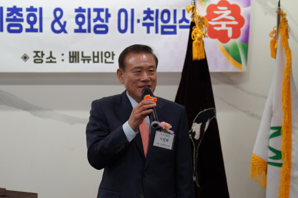 이어 향우회기 이양으로이웅근 이임 회장이 이철휘 신임 회장에게