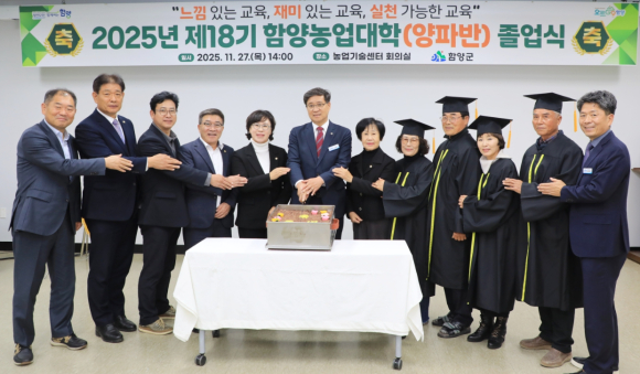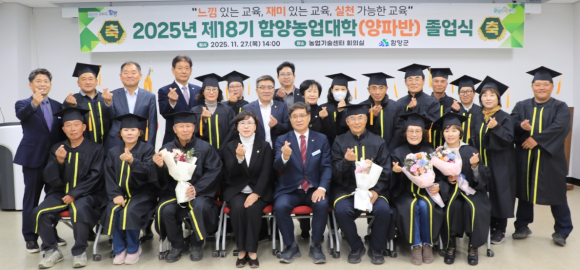 함양군, 2025년 제18기 함양농업대학(양파반) 졸업식 개최18기 농업대학 졸업식에서는 19명이 졸업함으로써 총 1,177명의 졸업생을 배출정호 기자 / |
