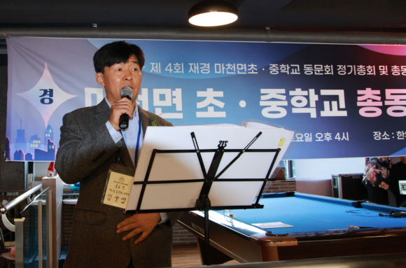 제가 제26대 마천면 초등학교 총동문회장 김영선입니다.