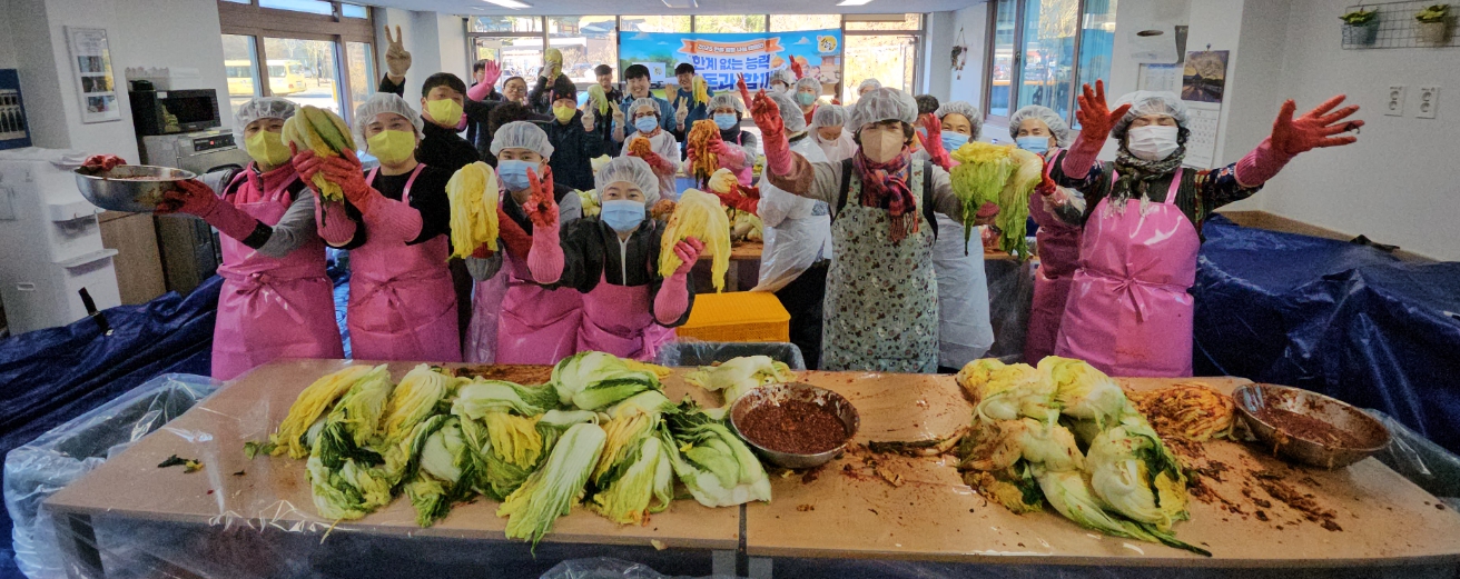 | 정필성 국토정보공사 함양지사장은 “연말을 맞이하여 중증장애인들과 지속적인 만남을 가지게 되어 의미있는 시간이었고, 앞으로도 지역사회에 다양한 사회공헌을 위해 노력하겠다.”고 전했다. 김재성 함양연꽃의집 원장은 “매년 김장 때마다 물심 양면 도와주신 LX 한국국토정보공사 함양지사 임직원분들과 금선사 신도회에 감사 인사를 전하고, 한돈자조금 수육 지원으로 김장에 참여한 봉사자분들과 함양연꽃의집 이용자들이 풍성한 김장 행사가 되어 감사하다”고 인사를 전했다. 함양연꽃의집은 사회복지법인 연꽃(대표이사 일여스님) 산하의 중증장애인 거주시설로 사람중심실천에 기반한 다양한 지역사회 활동을 진행하고 있다.