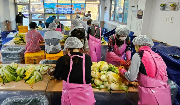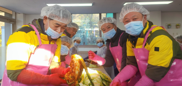 중증장애인거주시설 함양연꽃의집(원장 김재성)은 12월 5일 한 해 먹거리 김장을 진행했다. 이번 김장 행사에는 LX 한국국토정보공사 함양지사(지사장 정필성)와 금선사 신도회(신도회장 김영자)등 자원봉사자와 함양연꽃의집 이용자와 종사자 등 80여 명이 함께 참여하였다.