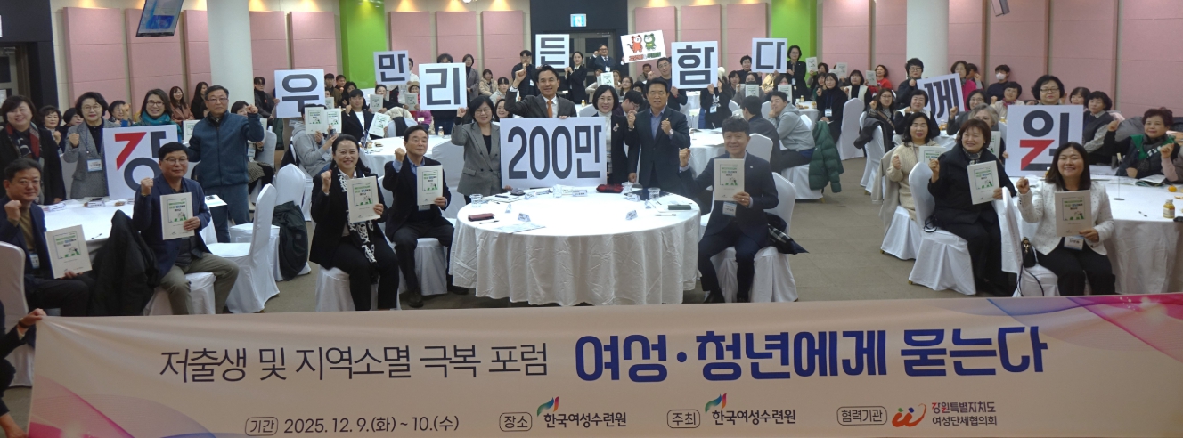 - 여성·청년의 현실 진단과 강원형 인구정책 해법 제시 - ▶ 여성·청년 당사자 참여형 정책 공론장 성황리 개최 ▶ 출산·돌봄·청년정착·일·생활 균형 등 실질적 정책 과제 공유