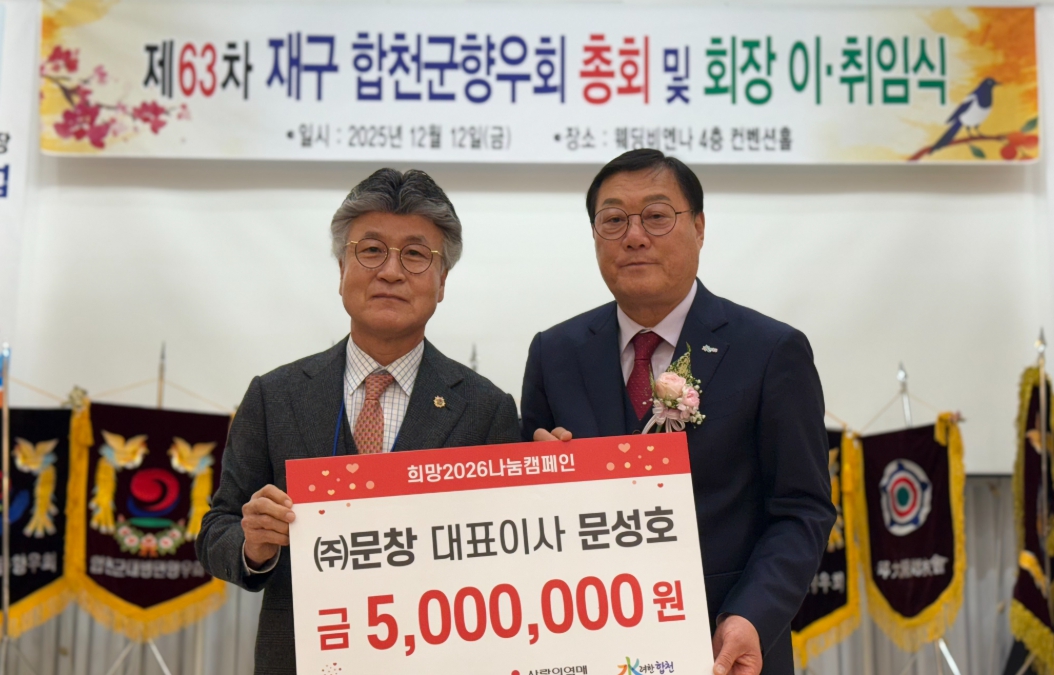 ㈜문창 대표이사 문성호, 합천군에 이웃돕기 성금 500만원 기탁고향의 어려운 이웃들에게 따뜻한 희망이 전해지길 바라는 마음으로 기탁하게 돼이광훈 기자 / |