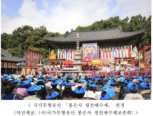 | 올해는 6개 종목에서 신규 보유자 8명, 보유단체 1곳이 인정되었으며, 분야별로는 전통 기술 분야에서 「자수장」 2명, 「궁중채화」 1명, 「대목장」 3명, 전통 공연·예술 분야에서 「가야금산조 및 병창」 1명, 「대금정악」 1명, 의례·의식 분야에서 「봉은사 생전예수재」 단체 1곳이 인정되었다. * 인정 현황: 김영이(자수장), 김영희(자수장), 최성우(궁중채화), 김영성(대목장), 이광복(대목장), 조재량(대목장), 정옥순(가야금산조 및 병창), 임진옥(대금정악), (사)국가무형유산 봉은사 생전예수재보존회(봉은사 생전예수재 보유단체)