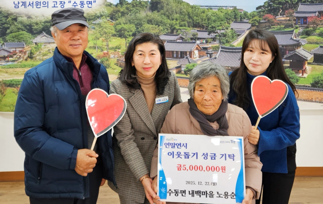 함양군 수동면, ‘희망 2026 나눔 캠페인’ 모금 열기연말연시 이웃사랑의 온정을 가득 담은 기탁행렬 이어져김도형 기자 / |
