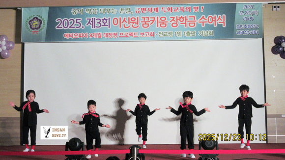 | 이어 열린 이신원 꿈키움 장학금 수여식에서는 환경·독서·과학·이중언어 등 각 분야에서 우수한 성과를 거둔 16명의 수상자들에게 이신원 대표가 직접 장학증서를 전달했다. 이신원 대표는 “직장에 취업을 했을 때 열심히 배워서 잘하겠노라 말하는 것은 무척 잘못된 것”임을 강조하며 “어디서 어떤 역할을 맡아도 척척 해낼 수 있도록 늘 준비된 사람이 되라”며 후배들에게 진심 어린 조언을 전했고, 학부모와 지역민들은 “아이들의 눈빛이 달라졌다”, “작은 학교의 기적을 직접 보고 있다”며 아낌없는 박수를 보냈다.