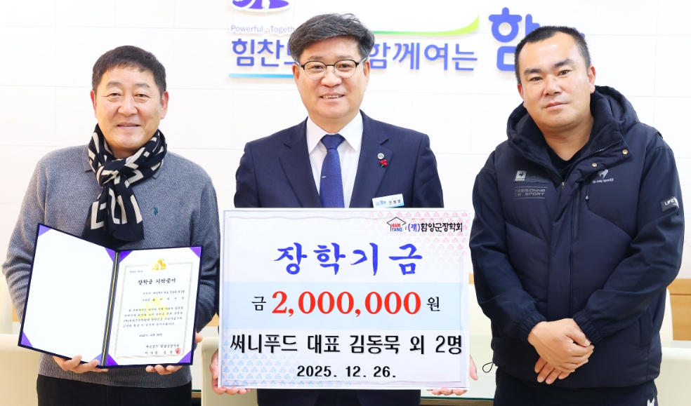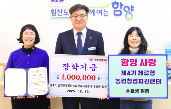 함양산삼축제 참여 푸드트럭·체류형농업창업센터 수료생, 장학금 기탁써니푸드 외 2개 업체 200만 원·제4기 수료생 일동 100만 원 전달이광훈 기자 / |