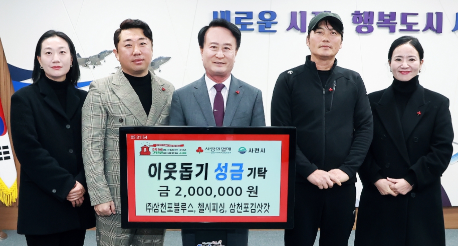 바다를 삶의 터전으로 삼아온 첼시피싱(선장 이임건)과 낚시 유튜버 삼천포김삿갓, ㈜삼천포블루스는 지난 30일 사천시청을 방문해 각자의 분야에서 사천을 알리며 받은 관심과 응원에 보답하고자 뜻을 모아 성금을 기탁했다.