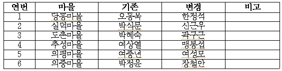 〇 6개 마을의 이장님이 아래와 같이 변경됨.