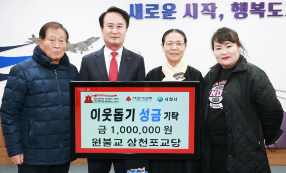 원불교 삼천포교당, 작은 정성 모아 ‘이웃돕기 성금 기탁’사천시 관내 어려운 세대의 생계비, 의료비, 집수리 사업비 등에 사용될 예정한용택 기자 / |