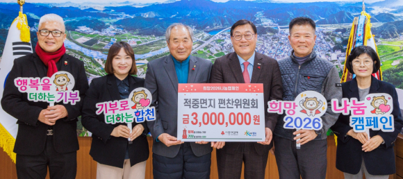 합천군 적중면지 편찬위원회, 합천군에 이웃돕기 성금 300만원 기탁관내 어려운 이웃에 지원할 계획이광훈 기자 / |