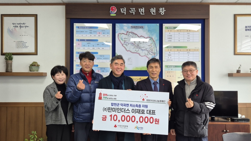 한미인더스 이재호 대표, 합천 덕곡면에 1,000만원 성금기탁- 덕곡 율지 출신 한상수씨도 50만원 성금기탁 -김도형 기자 / |