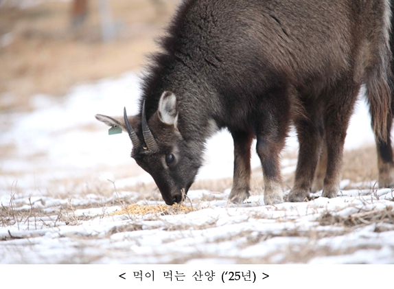그 결과, 이번 겨울(‘25.11.1.~‘26.1.12.)에는 폐사 신고된 산양이 총 5마리로, 지난해(‘24.11.~‘25.3.) 32마리, 재작년(‘23.11.~‘24.3.) 785마리가 폐사 신고된 것과 비교하면 크게 줄어든 수치이다.