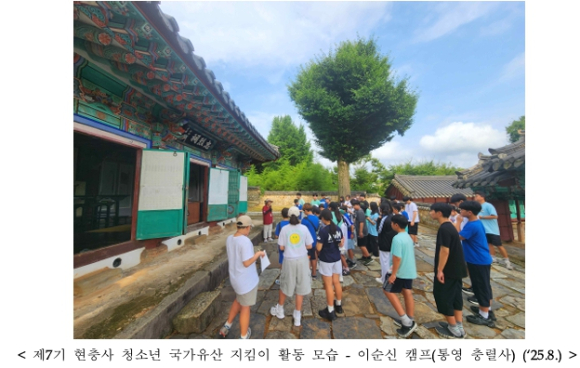 국가유산청 현충사관리소(소장 박근용)는 1월 15일부터 2월 6일까지 청년 교육 사회적협동조합 씨드콥과 함께 ‘제8기 현충사 청소년 국가유산 지킴이(이하 ‘현충사 지킴이’)’ 50명을 모집한다.