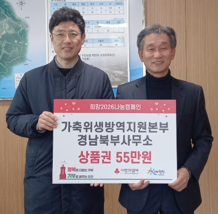 가축위생방역지원본부 경남북부사무소 상품권 기탁으로어려운 이웃에 따뜻한 나눔 실천정유근 기자 / |