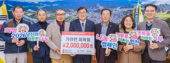 합천군 가야면 체육회, 합천군에 이웃돕기 성금 200만원 기탁이웃돕기 성금을 기탁하며 따뜻한 이웃 사랑의 행보를 이어나가정호 기자 / |