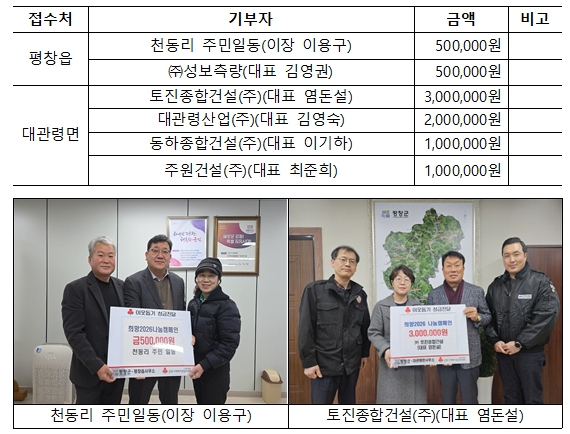 ....................................【미 담 사 례】..................................... □ 희망2026 나눔캠페인 성금 기탁 내역