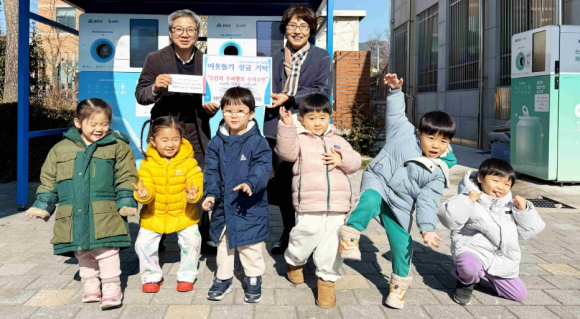함양 성민어린이집 원생, 수퍼빈 적립금 이웃돕기 성금 기탁원생들이 환경 보호 실천 활동의 하나로 수퍼빈 적립금이광훈 기자 / |