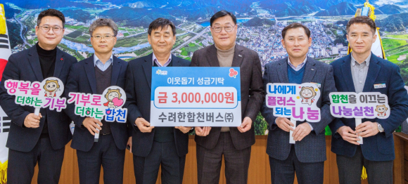 수려한합천버스(주) 이웃돕기 성금 300만원 기탁어려운 이웃들에게 따뜻한 위로와 힘이 되길 바라김주영 기자 / |