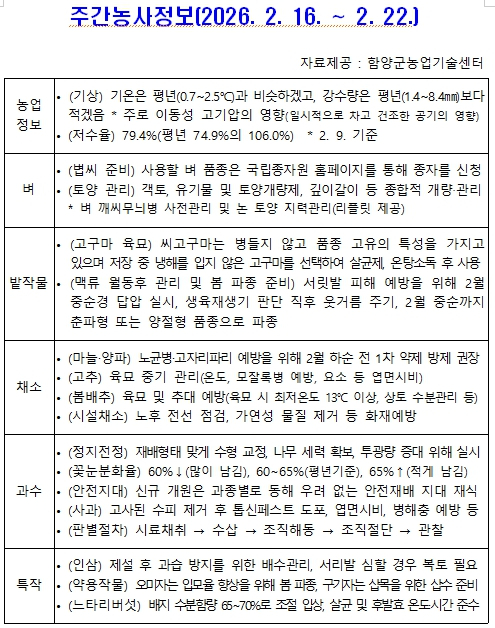 함양군 주간농사정보(저수율) 79.4%(평년 74.9%의 106.0%)정유근 기자 /
