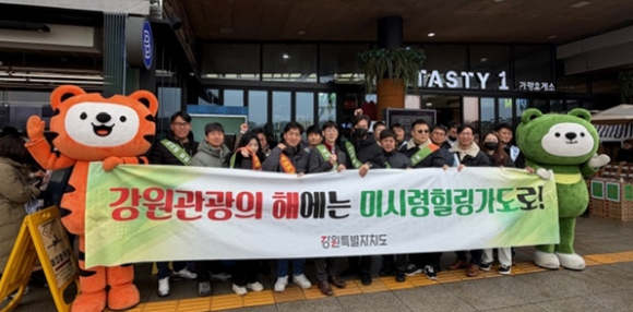 강원특별자치도(도지사 김진태)는 강원관광재단, 미시령동서관통도로(주)와 함께 설 명절을 맞아 ‘강원 관광의 해(2025~2026)’와 미시령 힐링가도 홍보를 위해 가평휴게소에서 캠페인을 실시했다.
