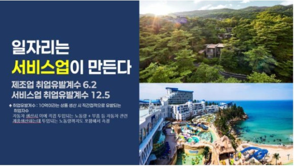 ◈ 제조업 2배의 일자리, 지역 경제 재창조의 핵심 호텔·리조트 산업의 취업유발계수는 12.5명으로 제조업(6.2명)의 2배에 달한다. 200실 규모 호텔 조성 시 약 400명의 신규 일자리가 발생하는 것으로 분석된다.