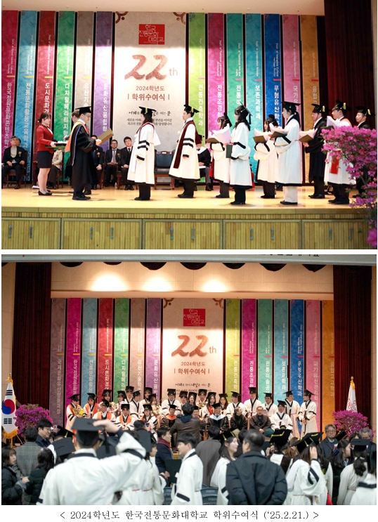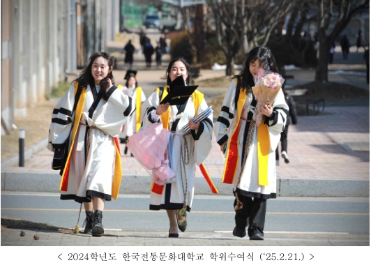 - 2025학년도 한국전통문화대학교 학위수여식 개최(2.20.)… 총 233명(박사 9, 석사 87, 학사 137) 졸업