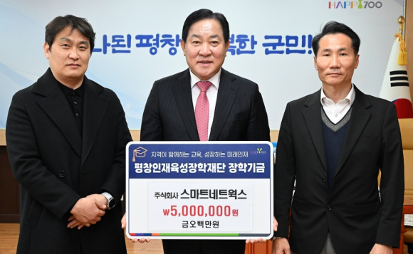 주식회사 스마트네트웍스, 평창인재육성장학재단 장학금 500만 원 기탁경제적인 이유로 학업에 어려움을 겪는 지역 학생들을 지원정호 기자 / |