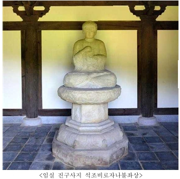 「임실 진구사지 석조비로자나불좌상」은 정확한 제작 시기를 알려주는 자료는 존재하지 않지만, 불상과 대좌(臺座)의 형식, 조형미, 진구사지에 있는 석등과의 비교 등을 통해 통일신라 하대인 9세기 후반에 제작된 것으로 추정된다. * 대좌: 불상을 올려놓는 받침