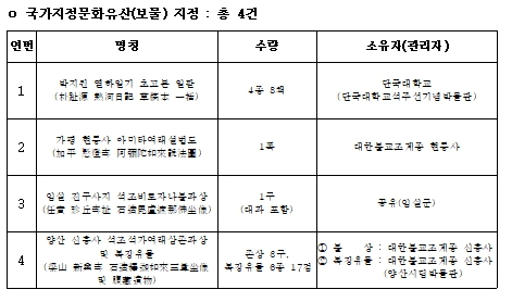 - 「가평 현등사 아미타여래설법도」, 「양산 신흥사 석조석가여래삼존좌상」 등 조선시대 불화·불상 등 3건도 보물 지정
