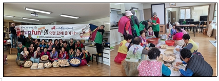 □ 용평면새마을회, 마을 순회 방문 한과 나눔‘Fun한 봉사’실시 ੦ 어제(2.25.), 용평면새마을지도자남녀협의회(회장 유종성, 정해옥)는 속사1리, 재산2리 마을회관에서 마을 주민들과 함께 손수 한과를 만들어 지역 어르신들께 전달하였음. |