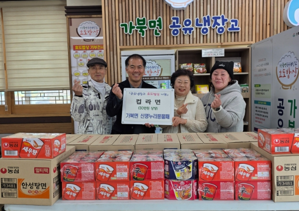 거창군 가북면은 지난 3일, 가북면 신명누리풍물패가 지역 내 어려운 이웃들을 위해 30만 원 상당의 라면을 공유냉장고에 기탁했다고 밝혔다. 이날 기탁금은 지난 정월대보름에 신명누리풍물패가 행정복지센터 등 관내 기관과 각 마을을 돌며 올 한해 면민의 안녕과 평안을 기원하는 마음을 담아 개최한 지신밟기 행사의 수익금으로 마련됐다. 기부된 라면은 공유냉장고를 통해 식사 해결에 어려움을 겪는 홀몸 어르신과 저소득 가구 등 도움이 필요한 주민들에게 전달될 예정이다.