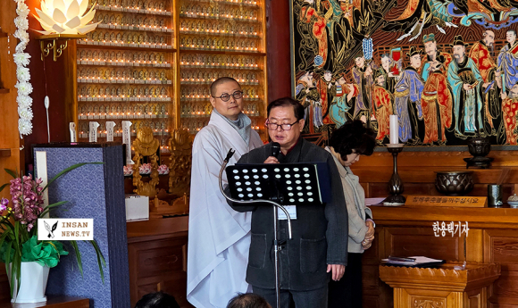 계속해서 강충희부위원장이 학사보고를 하고 만일학장스님은 인사말에서 "불교란 부처님께서 보리수 아래서 깨달음을 얻으시면서 불교가 생겨났다며 대승불교의 경전인 열반경의 ‘일체중생 실유불성(一切衆生悉有佛性)’이라는 구절을 인용하여 생명을 가진 모든 중생들은 누구나 부처의 본성인 불성을 지니고 있으며 중생들이 뿌리 깊은 번뇌와 악업 때문에 자신의 본래면목을 깨닫지 못해서 중생으로 살고 있을 뿐이라 여러분들도 불교대학에서 열심히 공부하여 불성의 깨닫는 기쁨을 느끼시길 바란다." 고 말했고