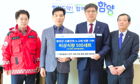 새마을금고 협의회, 함양군 산림재난대응단에 비상식량 500세트 지원새마을금고 진주·거창·산청·함양·합천 협의회, 산불 대응 인력 격려 물품 기부김도형 기자 / |
