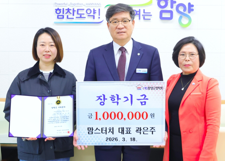 맘스터치 함양점 곽은주 대표, 장학금 100만 원 기탁NULL김주영 기자 / |