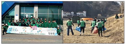 □ 진부면 남녀새마을지도자협의회, 환경정화 릴레이 봉사활동 실시 ੦ 지난(3.20), 진부면 남녀새마을지도자협의회(회장 전경주, 장형자) 회원 30여 명은 오대천 일원에서 굿매너 평창 문화시민운동의 일환으로 환경정화 릴레이 봉사활동을 실시하였음.