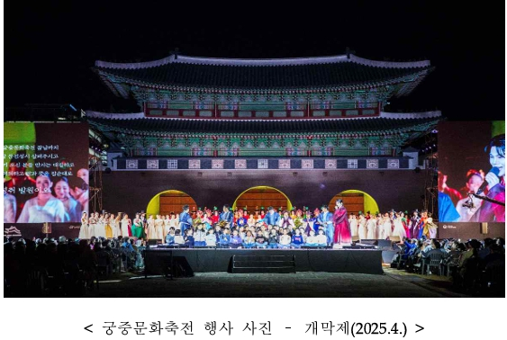 국가유산청의 가장 대표적인 궁궐 활용프로그램이자 국내 최대 국가유산축제인 <궁중문화축전>은 올해 12회를 맞아 5대 고궁(경복궁·창덕궁·덕수궁·창경궁·경희궁)과 종묘에서 각 궁궐의 역사적 개성을 살린 관객 참여형 특화 프로그램 운영과 외국인 전용 회차 확대 및 다국어 서비스 강화를 통해 글로벌 문화 축제로서의 위상을 높일 예정이다. * 봄 궁중문화축전(4.25.~5.3, 개막제 4.24.), 가을 궁중문화축전 (10.7.~10.11.) 올해는 특히 한부모 가족, 다문화 가정, 고령자 등 사회적 배려 대상자를 위한 특화 프로그램인 ‘장악원 악사와 떠나는 경회루 나들이’를 새롭게 준비했으며, 조선시대 궁궐의 하루를 체험할 수 있는 ‘경복궁 시간여행 – 궁중 일상재현’, 창덕궁 야간 투어형 복합 체험 프로그램 ‘효명세자와 달의 춤’, 덕수궁에서 대한제국 황실의 음식을 맛보며 역사 이야기를 듣는 외국인 특화 프로그램인 ‘황제의 식탁’ 등이 관객들을 맞을 예정이다.