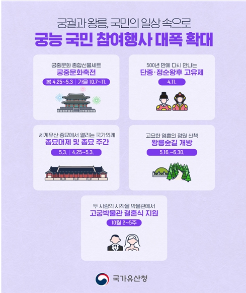 - 보는 관람에서 즐기는 향유로... 국가유산청, 궁능 국민 참여행사 대폭 확대