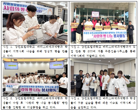“배움이 나눔으로”… 강원도립대학교 바리스타제과제빵과, 300개 사랑의 빵 전달- 주문진지역사회보장협의체와 협력, 지속적 봉사로 환경‧사회‧투명(ESG) 경영 실천 확산 -- 학생참여형 전공연계 사회공헌 프로그램으로 학생들에게 인기 - 이광훈 기자 / |