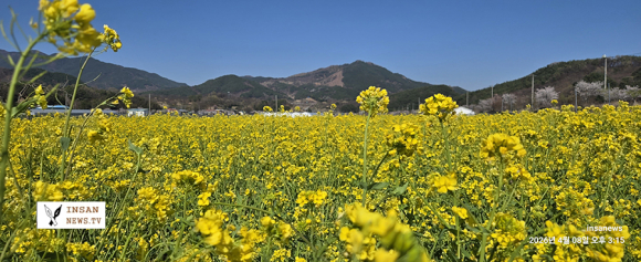 | [함양읍 백암산을 바라보고 찍은 유채밭]