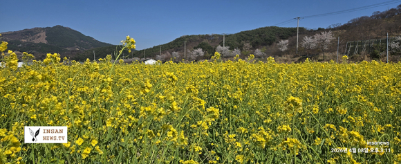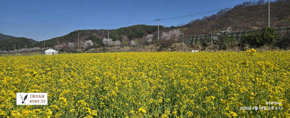| [구 88고속도로에 피어있는 벚꽃을 바라보고 있는 유채]