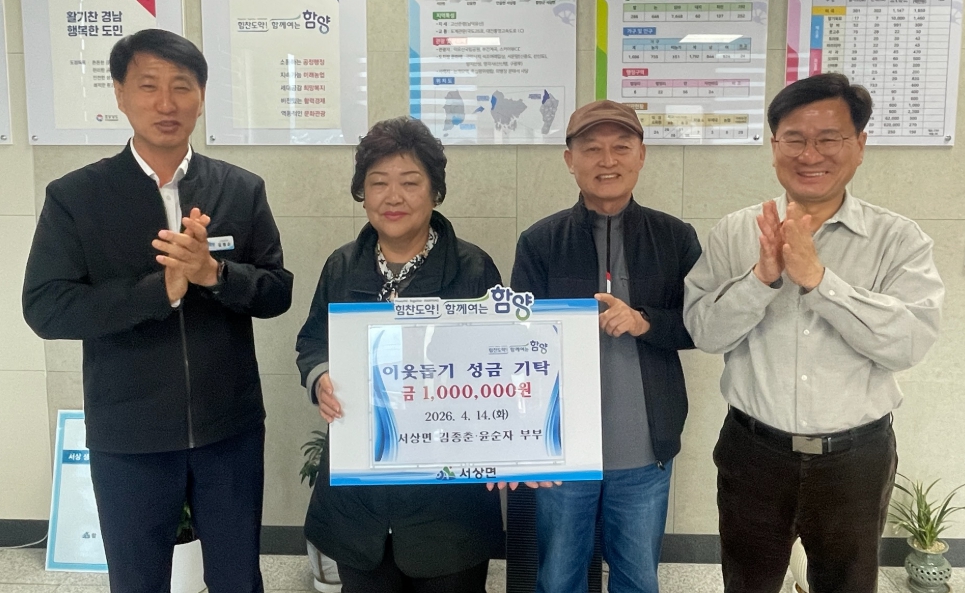 함양 서상면 아람농원 김종춘·윤순자 부부 성금 100만 원 기탁한우리지역아동센터 이용 아동과 취약계층 지원김주영 기자 / |